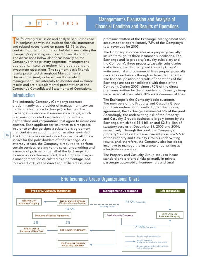 Erie Indemnity Company and the insurance companies of Erie Insurance Group last August, related to property/casualty insurance. It was another good year for Indemnity: growth in the management margin, net income and net ... Return Doc